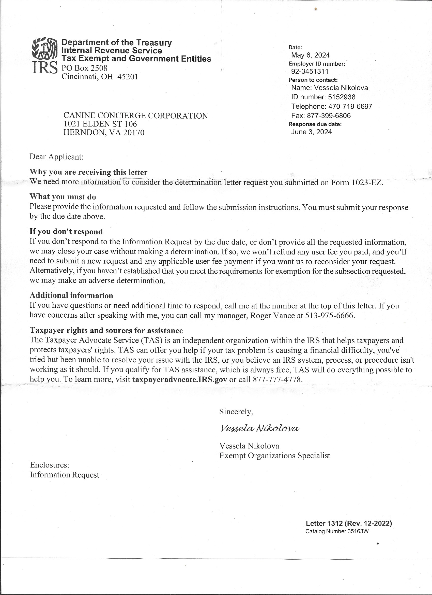 05/06/2024 – Information Request